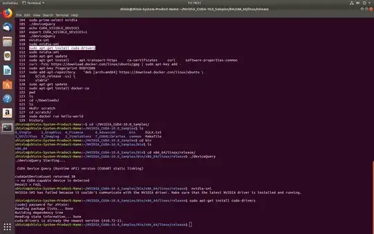 I follow official guide for installation. And actually I succeed on my own mac. But on ubuntu 18.04 machine, when I tried to test those samples, it showed that no CUDA-capable device detected, but actually there is an nvidia GPU, GTX470. Also, "nvidia-smi" command doesn't work, saying can't find the CUDA driver, but actually, if we run apt-get install cuda driver, it showed that cuda driver is already installed. You may check the error image:
