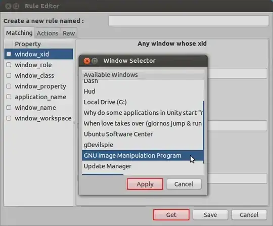 In "Rule Editor" Click on "Get", Select Gimp window and "Apply".
