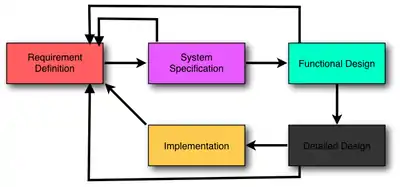 A typical project in this environment goes on the cycle shown in figure 1. Starting from the "requirement definition", which can be defined by the design team or deduced from a market research, the process undergoes a level of more and more details. It's convenient that issues are coming up in the "system specification", "functional design" or "detailed design" step by which the requirements need to be adjusted.