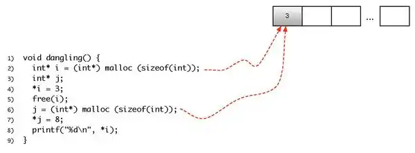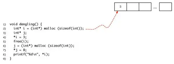 The following program contains a dangling pointer. Try to inspect it to find the problem.
