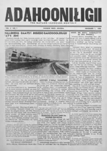 Ádahooníłígíí (Athapascan pronunciation: [átàhòːníɬíkíː] Navajo: "occurrences in the area/current events"[2]) was a Navajo-language monthly newspaper that was published in the Southwestern United States from 1943 to 1957.[3] After the Cherokee Phoenix, operating from 1828 to 1834, it was the second regularly circulating newspaper in the United States that was written in a Native American language. It was the first newspaper to be published in Navajo[4] and the only one to have been written entirely in Navajo.[5][6] In April 2019, roughly 100 issues of the newspaper were digitized as a part of the University of Arizona Library's National Digital Newspaper Program and they are currently available online.[7]