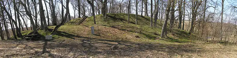 The Ąžuolpamūšė hillfort, also known as the Dabužiai hillfort, as is an archaeological site in Pasvalys district municipality, Lithuania near the village of Ąžuolpamūšė. It includes a Semigallian hillfort and a settlement site. It is located on a high point by the confluence of Tatula and Ūgė rivers.[1][2]