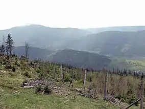 The Landscape Park takes its name from the highest peak in the range, Śnieżnik (1,424 m),[2] which forms a triangle with (similarly sounding) Śnieżka, as well as Ślęża peaks, further apart, connected by a red hiking trail only for qualified tourists.[3]
