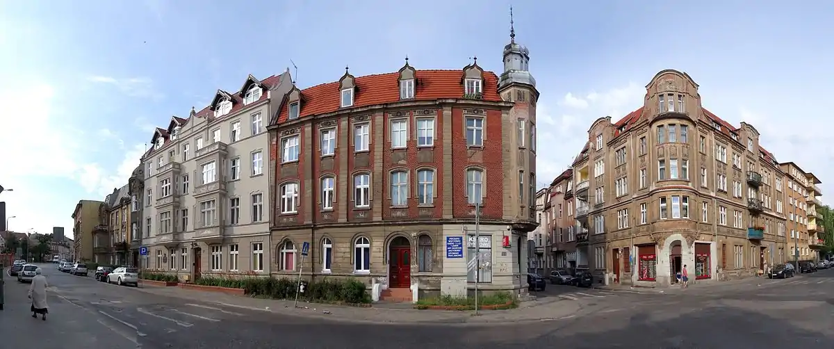 The house, initially at Berliner straße 6a was first the property of Johann Ceglarski, a rentier.[14] It then moved from 1910 to 1920 the hands of Erich Schaumann, a railway servant. In this house was born the poet and journalist Malgorzata Szulczynska (Feb 27, 1957). She was a journalist dealing with poetry, documentaries and literary critics; she wrote the first biography in Poland of Halina Poświatowska. She also owned an art exhibition gallery in Bydgoszcz, "Pod Trzynastką" English: Under Thirteen, at Śląska street 13/2. She died on December 12, 2003. In 2004, a plaque was unveiled on the tenement to commemorate her birthplace.[42]