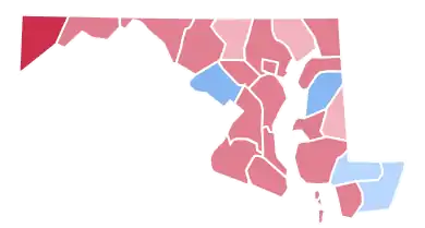 In this election, Maryland voted 8.8% more Republican than the nation at-large.[1]