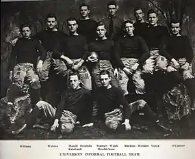 The 1917 Yale Bulldogs football team, commonly known in 1917 as the Yale "Informals",[1][2] represented Yale University in the 1917 college football season. The team compiled an undefeated 3–0 record and outscored opponents by a total of 47 to 0 in games against Loomis Institute (a private boarding school), New Haven Naval Base, and Trinity College.[3] No Yale player received first-team honors on the 1917 College Football All-America Team.