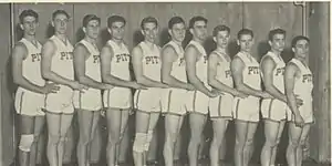 The 1929–30 Pittsburgh Panthers men's basketball team represented the University of Pittsburgh during the 1929–30 NCAA men's basketball season in the United States. The head coach was Doc Carlson, coaching in his eighth season with the Panthers. The team finished the season with a 23–2 record[1] and were named national champions by the Helms Athletic Foundation[2] (two seasons earlier, the Panthers were also named Helms national champions).[2] Chuck Hyatt was named a consensus All-American for the third consecutive season, led the nation in scoring for a second time in his career, and capped off his collegiate career by being named the national player of the year.[3]