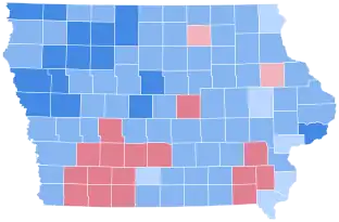 Iowa was won by incumbent President Franklin D. Roosevelt (D–New York), running with Vice President John Nance Garner, with 54.41% of the popular vote, against Governor Alf Landon (R–Kansas), running with Frank Knox, with 42.70% of the popular vote.[3][4] As of the 2020 presidential election, this is the last occasion when Sioux County, Lyon County and O'Brien County have voted for a Democratic presidential candidate.[5][6] Iowa would not vote Democratic in a presidential election again until 1948.