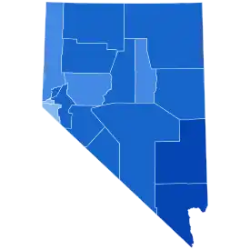 As of the 2020 presidential election, this is the last occasion Douglas County voted for a Democratic presidential candidate,[5] and the last time a Democratic nominee won every single county in the state. This was the first time ever that a presidential candidate won two terms by carrying all counties in Nevada in both instances.