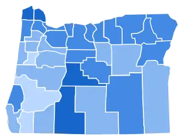 | Yamhill | 5,366 | 55.92% | 3,443 | 35.88% | 729 | 7.60% | 58 | 0.60% | 1,923 | 20.04% | 9,596 |