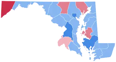 | Anne Arundel | 13,116 | 58.54% | 9,204 | 41.08% | 85 | 0.38% | 3,912 | 17.46% | 22,405 |