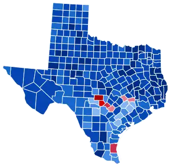 | Tarrant | 36,062 | 82.73% | 7,474 | 17.15% | 53 | 0.12% | 28,588 | 65.59% | 43,589 |