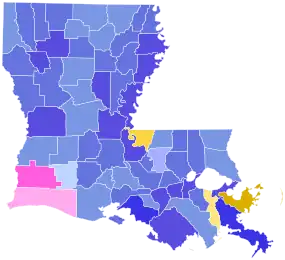 ![]() Parish results Overton: 30–40% 40–50% 50–60% 60–70% 70–80% 80–90% Stephens: 40–50% 50-60% 70–80% Hawkins: 40-50% 60-70% | |||||||||||||||||||||