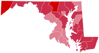 In this election, Maryland voted 4.67% to the right of the nation at-large.[13]