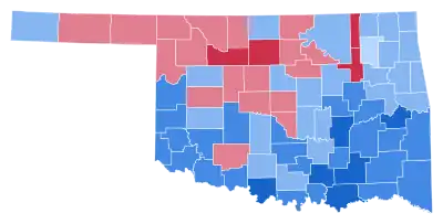 | Okfuskee | 1,630 | 37.69% | 2,663 | 61.57% | 32 | 0.74% | -1,033 | -23.88% | 4,325 |