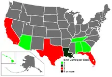 ![]() Number of bowl games per state. | |||||||||||||||||||||||||||||||||||||||||||||||||