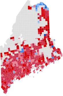 The presidential election of 1984 was a very partisan election for Maine, with more than 99% of the electorate voting either Democratic or Republican, and only four parties appearing on the ballot.[1] Every county in Maine voted for Reagan by a double-digit margin, a strong performance in a historically Republican-leaning state that had trended Democratic since the 1960s. Reagan became the first Republican to win industrialized, Catholic French-Canadian Androscoggin County since Dwight D. Eisenhower in 1956.[2]