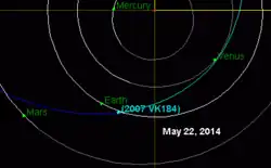 ![]() The 2014 close approach of 2007 VK184[1] | |