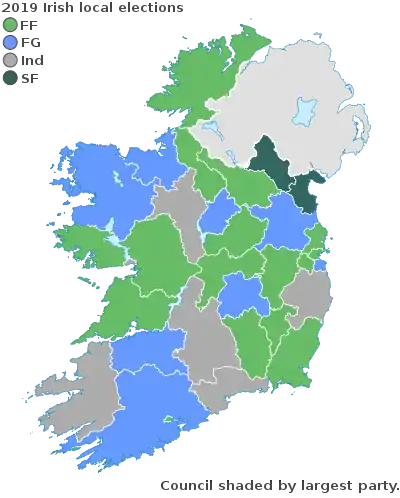- 1 2 Doyle, Kevin (21 May 2019). "Fine Gael ban incoming councillors from 'power-sharing' agreements with Sinn Féin on councils". Irish Independent. Archived from the original on 23 May 2019. Retrieved 22 May 2019.; Kelly, Fiach (21 May 2019). "Fine Gael orders councillors not to work with Sinn Féin after elections". The Irish Times. Archived from the original on 25 May 2019. Retrieved 22 May 2019.