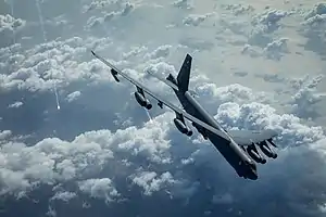 ![]() A 20th Expeditionary Bomb Squadron B-52 Stratofortress releases flares over the Indian Ocean following a mission in 2020. | |