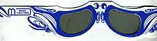 The earliest confirmed 3D film shown to an out-of-house audience was The Power of Love, which premiered at the Ambassador Hotel Theater in Los Angeles on September 27, 1922.[24][25][26] The camera rig was a product of the film's producer, Harry K. Fairall, and cinematographer Robert F. Elder.[19] It was filmed dual-strip in black and white, and single strip color anaglyphic release prints were produced using a color film invented and patented by Harry K. Fairall. A single projector could be used to display the movie but anaglyph glasses were used for viewing. The camera system and special color release print film all received U.S Patent No. 1,784,515 on December 9, 1930.[27][28] After a preview for exhibitors and press in New York City, the film dropped out of sight, apparently not booked by exhibitors, and is now considered lost.