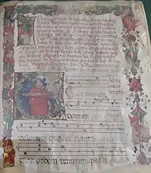 In 1433 the Camaldolese Ambrogio Traversari had occasion to speak of the monastery's library, describing it as "sacroru, voluminum copiosa." It was also to grow considerably between 1445 and 1464 when the commendatory abbot was Gregorio Correr, a great supporter of culture and the commissioner of Mantegna's San Zeno Altarpiece, which is still preserved inside the church.[8] In 1472, called with the intention of strengthening the adherence to the Benedictine rule that was to be observed, more German monks arrived in the monastery who also took charge of collecting more manuscripts.[8]