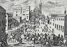 Relations between the monks and the Germans, however, soured to the extent that the former even went so far as to destroy Verona's carroccio.[22] Of them the commendatory abbot (1567-1577) Giovanni Francesco Commendone also had occasion to note bad behavior, who on the occasion of a visit spoke of "disciplinam regularem in hoc Monasterio esse valde depravatam, ac fere collapsam [. ..] Preterea graves excessus in Monasterio factos fuisse" consequently having to promote a "Reformatio monachorum S. Zenoni."[23]