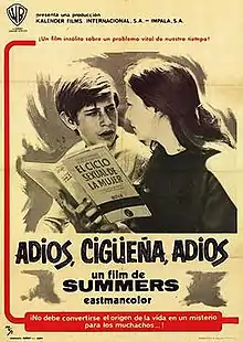 Adiós, cigüeña, adiós (aka Goodbye, Stork, Goodbye) is a 1972 Spanish comedy-drama film.[1][2] It is directed by Manuel Summers, composed by Antonio Pérez Olea and starring by Maria Isabel Álvarez, Francisco Villa and Curro Martín Summers.[3]