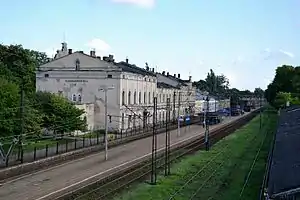 Aleksandrów Kujawski railway station is a railway station serving the town of Aleksandrów Kujawski, in the Kuyavian-Pomeranian Voivodeship, Poland. The station is located on the Kutno–Piła railway and Aleksandrów Kujawski–Ciechocinek railway. The train services are operated by PKP and Przewozy Regionalne.