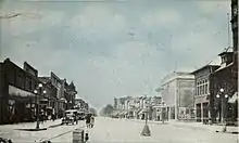Alma grew rapidly at the beginning of the 20th century, with a population of 2,757 in 1910 and 7,542 in 1920.[3] The boom was in large part due to the increase in the industrial base, with agricultural firms such as the Central Michigan Produce Company, the Alma Sugar Company, and the Libby, McNeill, and Libby pickle canning plant opening. In addition, the founding of the Republic Motor Truck Company in 1913, and its subsequent expansion to support World War I production, drove the increase in Alma's fortunes. The commercial district followed suit, extending its boundaries both east and west along Superior, as well as south along State, as more structures were built.