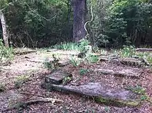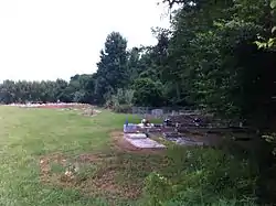 A new church was built in 1919, on the corner of Gibbs Road and Antioch Lane, still in Mount Meigs.[6] The old church no longer stands, and the cemetery, though still in use, is suffering from neglect, with undocumented burials possibly taking place. Many graves are unmarked; others are overgrown or have fallen in. According to FindAGrave.com, there are some 380 graves, with 55 burials performed between 2010 and 2014.[7]
