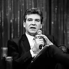 Arnaud Montebourg (French pronunciation: [aʁno mɔ̃tbuʁ]; born 30 October 1962) is a French politician, lawyer and entrepreneur who served as the Minister of Industrial Renewal from 2012 to 2014,[1] then as Minister of Economy, Industrial Renewal, and Digital Affairs, 31 March 2014 until his resignation on 25 August.[2]