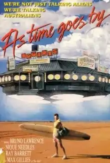 As Time Goes By (originally titled The Cricketer) is a 1988 Australian science fiction comedy film directed by Barry Peak and starring Max Gillies, Bruno Lawrence, and Nique Needles. The title song is heard in the Australian version of the film but not in overseas prints, because of its high cost.[2]