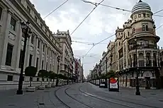 Some 21,000 vehicles circulated daily along the avenue, emitting about 580 tons of gases, causing serious damage to the cathedral and the Archive of the Indies. On 17 April 2006, it was closed to traffic to carry out the works for its pedestrianization. In October 2007, the works were completed, and a tram line called metrocentro came into operation to block access to the city center.[4][5]