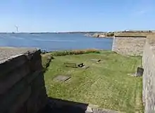 Two of the Gothenburg Squadron's frigates, the Fredericus and the Halmstad had been leased to the Gathenhielm privateers. The Halmstad was equipped, but undermanned. These two frigates as well as an additional two from Nya Varvet, formed a blockade in Göta älv between Nya Varvet and Rya Nabbe. Strömstierna supplied the vessels with barricades so as to prevent the Danes from boarding them.[19] Additionally, Nya Älvsborg fortress had been reinforced with a crew of 400 soldiers and 90 cannons. The two cannon batteries Lilla Billingen and Rya Nabbe, with 12 heavy cannons each had been manned with infantry from the Saxon Infantry Regiment led by Colonel G.D Zengerlein. In addition, the Småland Regiment as well as an elite unit, the Grenadier Battalion led by Johan Clausen, which composed of handpicked grenadiers from different units, were assigned to man the forts. In total, there were around 1000 Swedish soldiers and 200 cannons at the rivermouth of Göta älv.[20]
