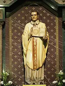 In late April 1733 he received a letter from his friend Augustine Cadaveraz (in Bilbao) after he had requested the priest to translate a Latin chapter on Corpus Christi from Joseph de Gallifet's book "On Devotion to the Sacred Heart of Jesus".[3] On 3 May 1733 he took the book from the library of the house and took it to his room where he began to read it; the Sacred Heart both inspired and illuminated him. On 4 May he reported receiving a vision from Jesus Christ who said to him: "I wish for you to spread the devotion to My Sacred Heart throughout all of Spain". Christ returned to him in another vision on 14 May. On 12 June 1733 he consecrated himself to the Sacred Heart using the same formula that Claude La Colombière used.[3][5] He distributed leaflets for the devotion and even wrote a letter to King Philip V asking for his support in requesting the Holy See to approve a special feast for the Sacred Heart.[6]