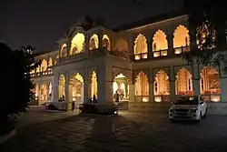 The Bissau Palace Hotel, Jaipur is a heritage hotel in Jaipur, in India. Built in the 19th century, it was the palace of Raghubir Singhji, a royal nobleman. It is located just outside the walls of the old city of Jaipur, a short distance to the north of Chand Pol (an entrance gate to the old city). It is situated 1 kilometre (0.62 mi) northeast of the downtown area.[1]