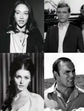 The central cast of Black Christmas (clockwise from left to right): Olivia Hussey, Keir Dullea, John Saxon, and Margot Kidder.