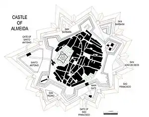 After Marshal André Masséna's retreat from Portugal, the French installed a garrison of 1,400 men under Brenier in the fortress. These troops were blockaded in the town by forces under Arthur Wellesley, 1st Duke of Wellington. Since the Anglo-Portuguese Army had no heavy guns to breach the walls, they were forced to starve the garrison out. Because of this, this operation was technically a blockade rather than a siege.