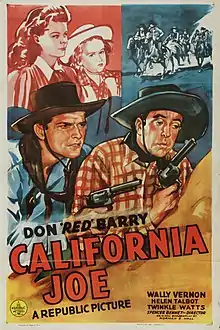 California Joe is a 1943 American Western film directed by Spencer Gordon Bennet and written by Norman S. Hall. The film stars Don "Red" Barry, Wally Vernon, Helen Talbot, Twinkle Watts, Brian O'Hara and Terry Frost. The film was released on December 29, 1943, by Republic Pictures.[1][2][3]