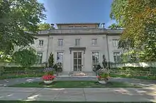 The Gray House is named after Paul Edward Gray, the fourteenth president of MIT (1980–1990). This residence for the MIT president is located adjacent to Senior House, and cradles inside the elbow of the L-shaped dormitory. The President's House was the last part of the original Bosworth campus to be constructed, and consists of a three-story structure with a simple, rectangular floor plan that incorporates a ballroom on the top floor.[20]