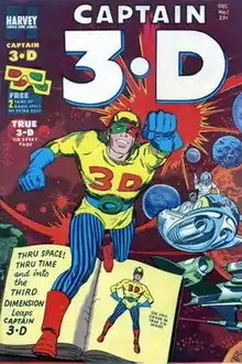 Captain 3-D is a superhero appearing in comic books published by Harvey Comics. Created by Joe Simon and Jack Kirby, the character marked an early attempt to produce a 3-D comic book.[1]