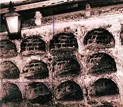 The Iglesia del Espíritu Santo's greatest interest from an architectural point of view lies in the simplicity of the coral stone construction and the lack of lavish decoration.[2][lower-alpha 1] Other elements of great importance are the funerary crypts that were discovered in 1953. The crypt is from times before the Colon Cemetery (1876) in El Vedado was built. The crypt is entered from the left of the altar and contains several catacombs.