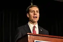 After Lamb's apparent win in the special election, Republicans claimed that he won because "he ran as a conservative".[34][35] This was a distinct shift from the campaign, during which Republicans said Lamb "Walks The Liberal Party Line" and chastised him for opposing the Republican 2017 tax reform bill.[34] Lamb ran in opposition to the law, describing it as a "giveaway" to large corporations and a "betrayal" of middle-class Americans.[34] Trump asserted that Lamb had said he "liked Trump", but there is no evidence of Lamb ever doing so.[34] Lamb was certified as the winner on April 2, 2018, winning by 755 votes.[36] He was sworn in by House Speaker Paul Ryan on April 12, 2018,[37] and became the first Democrat to represent this district since 2003, when it was numbered as the 20th district.