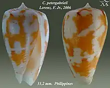 - 1 2 Conus petergabrieli Lorenz, 2006. Retrieved through: World Register of Marine Species on 27 March 2010.