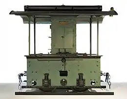 The Farming and foresting Exhibition was held in Vienna from 14 May to 30 October 1890. The organisers wanted to provide easy access for the attendees. The entrepreneur Josef Bierenz installed and operated a narrow gauge passenger tramway using Daimler Waggonets from the Praterstern the western entrance of the fair centre at Rotunderplatz. It was used all summer and transported thousands of passengers. Each train consisted of a Waggonet and a trailer and offered space for 24 passengers. One vehicle is mothballed in the archive of the Vienna Technical Museum but currently not being exhibited.[2]