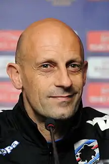 On the same day, he was announced as new head coach of Sampdoria, with whom he made his managerial debut on the European stage in the third qualifying round of the 2010–11 UEFA Champions League and then the 2010–11 UEFA Europa League.[6] Sampdoria's form in Serie A so far had been middling, with the Blucerchiati keeping a tight defence, but struggling to score, especially after the departures of Antonio Cassano and Giampaolo Pazzini. He was sacked on 7 March 2011 after a home loss of 3–2 against Cesena, the last match of a run of ten games that included seven losses and just one win. He was replaced by Alberto Cavasin on the same day.[7]