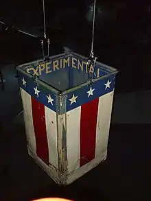 On August 17, 1959, Piccard flew a red, white and blue balloon basket at a centennial commemoration of John Wise's Jupiter balloon flight of United States mail. In the same basket he set a gas balloon world record altitude of 34,642 feet on July 19, 1961 from Faribault, Minnesota.[9]