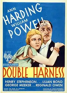 Double Harness (1933) is an American pre-Code film starring Ann Harding and William Powell. It was based on the play of the same name by Edward Poor Montgomery. A young woman maneuvers a lazy playboy into marrying her.
