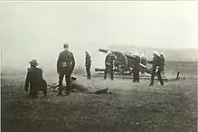 Under the sweeping Haldane Reforms of 1908, the Militia was replaced by the Special Reserve, a semi-professional force whose role was to provide reinforcement drafts for Regular units serving overseas in wartime. Although the majority of the officers and men of the Dublin City RGA (M) accepted transfer to the Special Reserve Royal Field Artillery, becoming the Dublin City Royal Field Reserve Artillery on 30 August 1908, all these units were scrapped in 1909, the Dublin unit disbanding on 11 December.[1][5][7][25][26][27] Instead the men of the RFA Special Reserve would form Brigade Ammunition Columns for the Regular RFA brigades on the outbreak of war.[28]